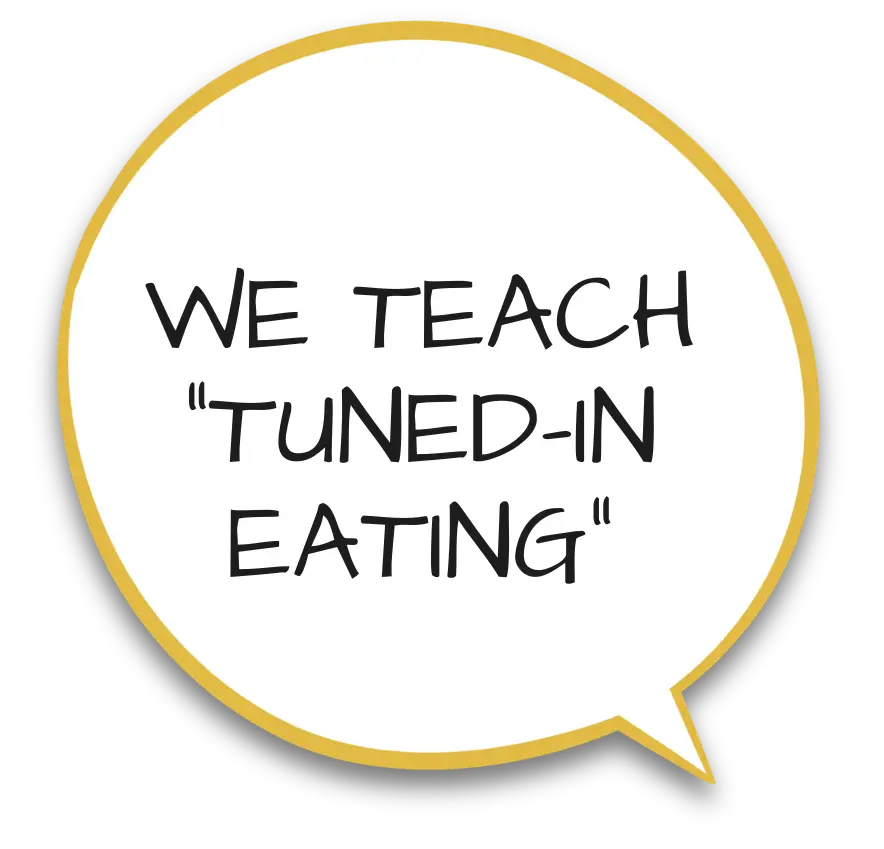 Tuned-in Eating involves discovering eating guidelines (not rules) for each student. Students do this by getting curious and asking themselves “Food & You” questions and experimenting around food. They are the experts on their own bodies. Students learn how to identify when they are hungry and when they are satisfied.